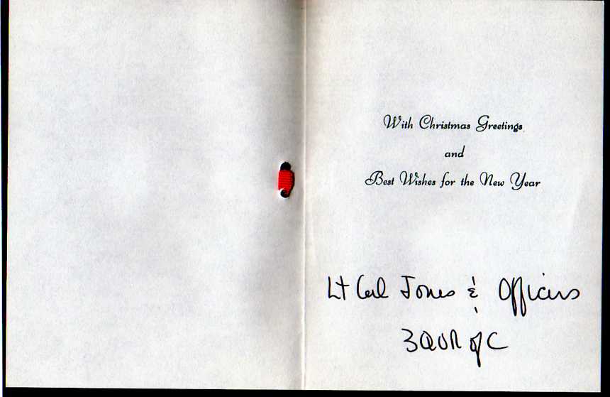 1965 or 1966 Christmas Card November 25, 2013 860 × 559 1965 or 1966 Christmas Card Inside of 1965 or 1966 QOR Christmas Card signed by Lt Colonel Jones, 3rd Bn Share this: Email a link to a friend (Opens in new window) Email Print (Opens in new window) Print TweetMore Share on Telegram (Opens in new window) Telegram Share on WhatsApp (Opens in new window) WhatsApp PocketShare on Tumblr Share on Reddit (Opens in new window) Reddit Like Loading...