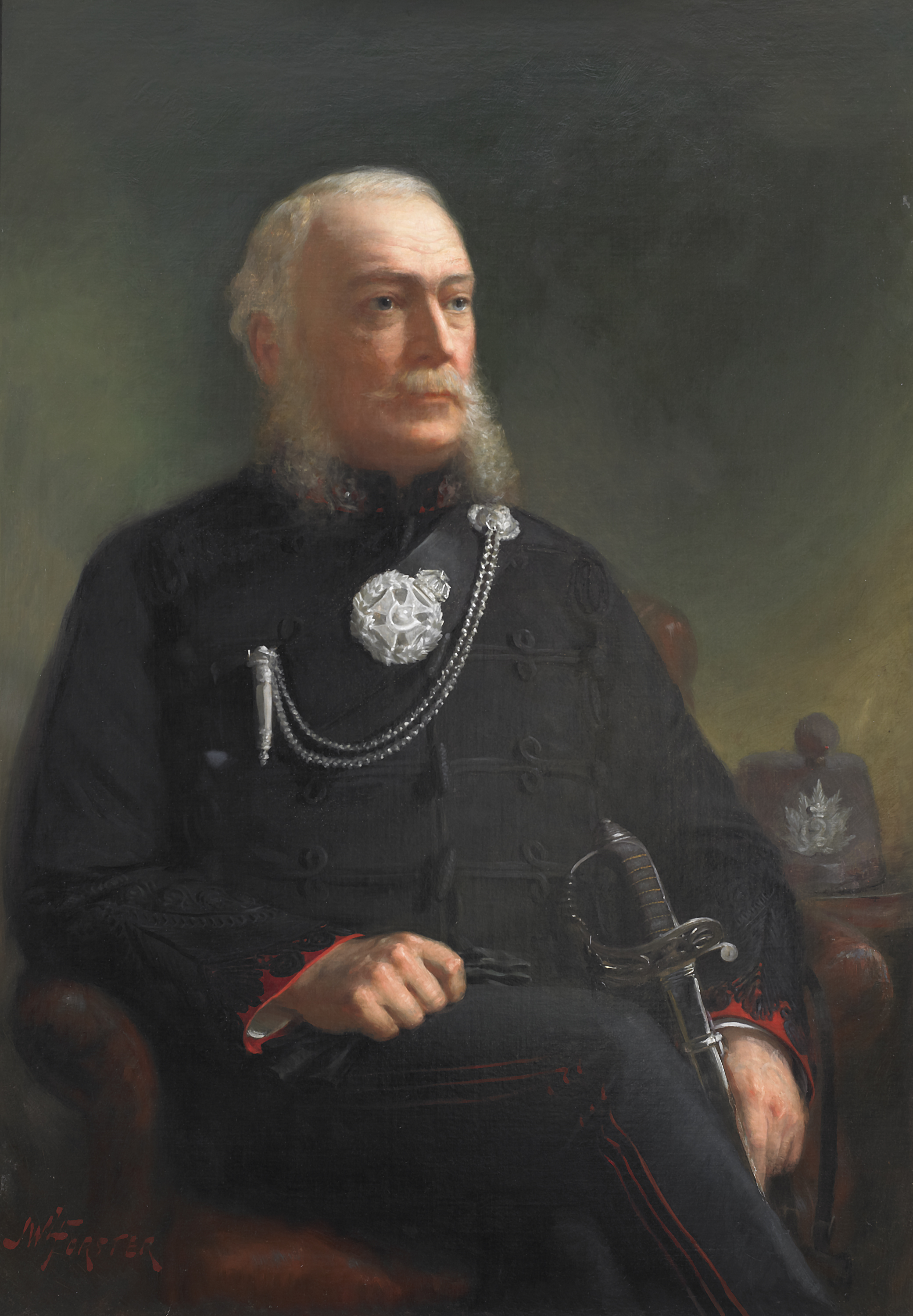 John Wycliffe Lowes Forster, Canadian portrait painter, was born in Norval, Ontario in 1850. He began his artistic training in Toronto in 1869 as an apprentice to the portrait painter John Wesley Bridgman (1833-1902). In 1871 he was awarded first prize in the amateur class at the annual fair of Upper Canada Agricultural Society for his portrait of Bridgman. In 1879 Forster studied for three months at the South Kensington Art School in London with Canadian landscape painter Charles Stuart Millard (1837-1917). A short time later, he enrolled at the Académie Julian in Paris, where he studied for the next three years under Gustave Boulanger (1824-1888), William Adolph Bouguereau (1825-1905), Tony Robert-Fleury (1837-1911), and Carolus-Duran (1838-1917). Upon returning to Canada in 1883, Forster set up his own studio in Toronto, became a member of the Ontario Society of Artists and the Royal Canadian Academy, and quickly gained aclaim for his portraits of notable people, including Bliss Carmen (1861-1929), Timothy Eaton (1834-1907), Sir Wilfred Laurier (1841-1919), and Queen Victoria (1819-1901).