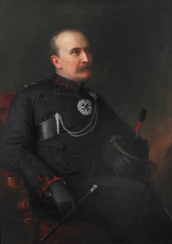 Lieutenant Colonel R.B. Hamilton – Sixth Commanding Officer, 1889-1897. The original painting hangs in the Queen’s Own Rifles Officers’ Mess. While the artist’s signature is not evident in this photo, it was likely J. W. L. Forster who had painted the preceding five and the next succeeding Commanding Officer. • Photo by Christopher Lawson, June 17, 2010.