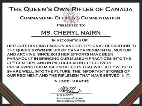 The CO and RSM provided an update on the current state of the Regiment before presenting our Collections Officer Cheryl Nairn with the Commanding Officer’s Commendation.