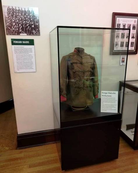 One hundred years after that battle, the tunic he wore that fateful day was presented to The Queen’s Own Rifles by Old Fort Erie of the Niagara Parks Commission having been handed down by McEachren’s daughter.