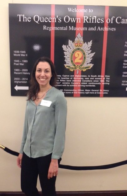 There were various presentations throughout the morning but I was most excited to be able to present about The Queen’s Own Rifles of Canada and in particular about our Regimental Museum! After my talk, the 96 public servants present were able to tour Casa Loma and most climbed to the third floor to check out our museum in person. I was also able to provide some behind the scenes curator access in our office/archives (and former bathroom) area.