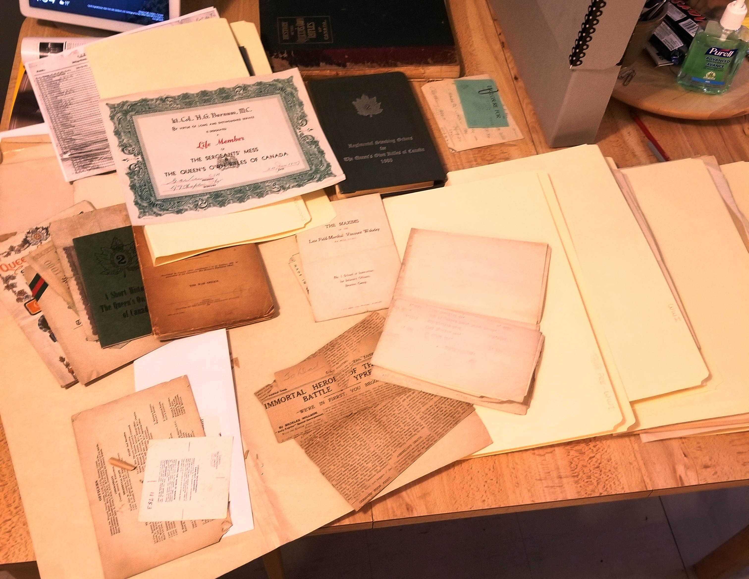 We also made some purchases to fill some collection gaps. With funding donated by the QOR Maple Leaf Rifle Club, we were able to purchase a military version of the WWI Ross Rifle as we only had a civilian version in our collection. We also purchased a late 19th century headdress and collection of rare badges, and in December with additional funding from the Regimental Trust, a late 19th set comprising of an officers’ belt, crossbelt, and (rare) sabretache. The only downside perhaps is that many of these items have now joined the growing queue to be properly documented, photographed, and cataloged!