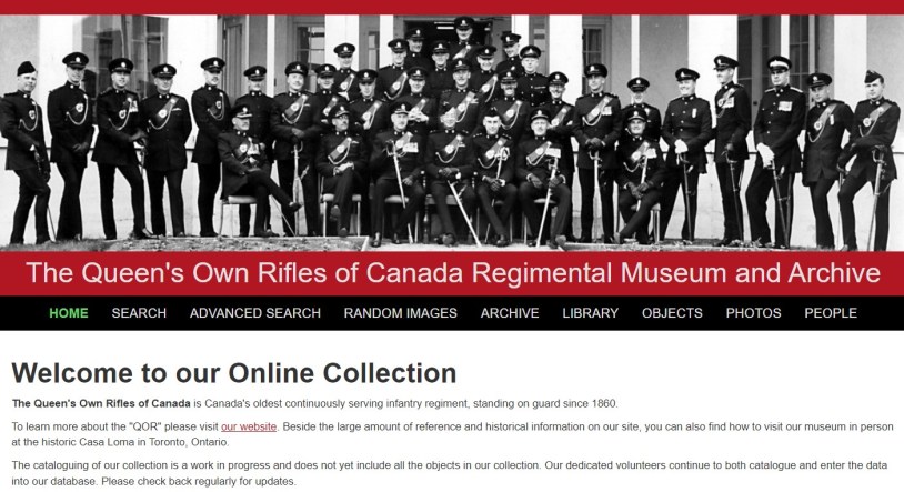 Our role as the Regimental Museum is to both capture and share the history of The Queen’s Own Rifles. Maintaining our physical exhibits at Casa Loma is a big part of how we share and hundreds of thousands of people come through out displays every year – many tourists from around the world. But realizing that many more people will never be able to visit our physical location, we felt it was important, like any other museum, to have an online presence and so we created this website in 2012. We followed that up with a Facebook Page, a Twitter account, and most recently our Flickr site for sharing our thousands of photographs.