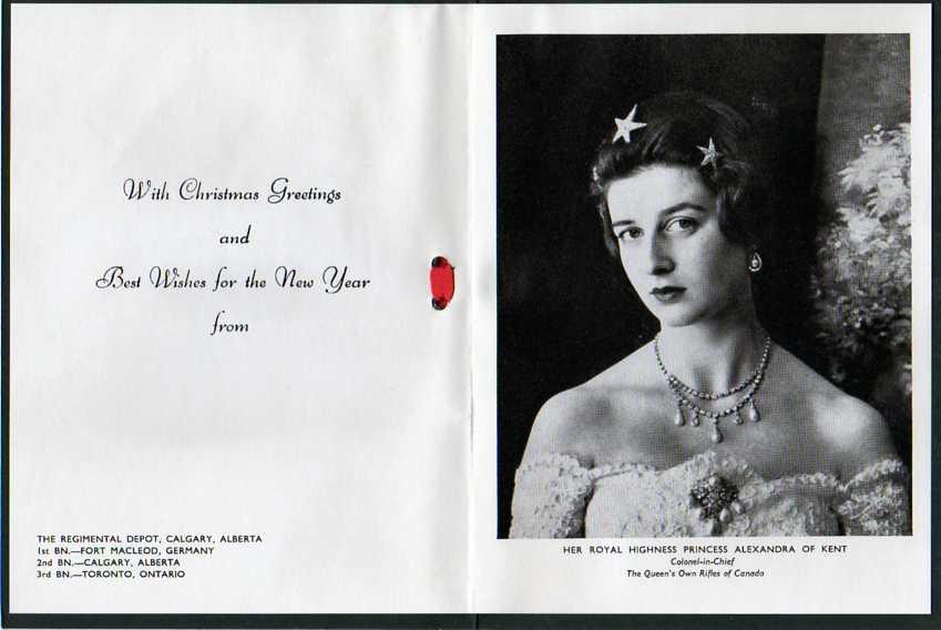1962 QOR Christmas Card November 25, 2013 849 × 568 1962 QOR Christmas Card 1962 QOR Regimental Christmas Card with a photo of a young Colonel-in-Chief, Prince Alexandra of Kent Share this: Click to email a link to a friend (Opens in new window) Email Click to print (Opens in new window) Print TweetMore Click to share on Telegram (Opens in new window) Telegram Click to share on WhatsApp (Opens in new window) WhatsApp PocketShare on Tumblr Click to share on Reddit (Opens in new window) Reddit Like Loading...
