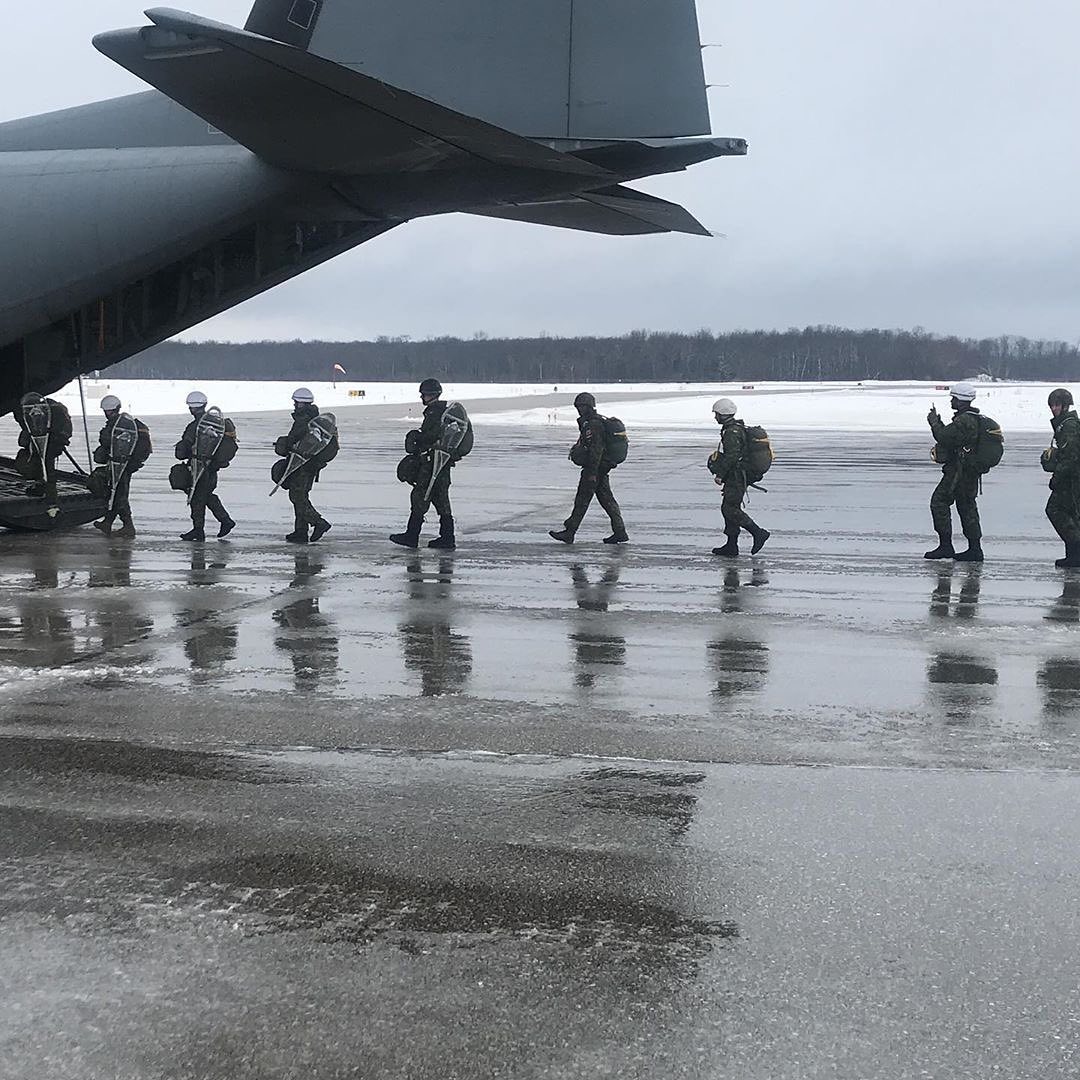 January 21-23rd – The QOR 60th (Para) Coy with members of 32 Canadian Brigade Group and 31 Canadian Brigade Group conducted a full equipment static-line tamp parachute drop onto DZ Gorvad CFB Borden from 1000’ AGL. A CC-130J Hercules from 436 Sqn supported the drop. Lake Simcoe Regional Airport served as the Airhead. Paratroopers were participating on Exercise Northern Star at 4 Div TC Meaford and Burwash