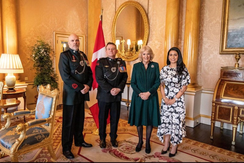 Feb 1 – Honorary Lieutenant Colonel Manjit Minhas, Lieutenant Colonel Scott Moody and Regimental Sergeant Major Jeff Johnston met at Buckingham Palace with Colonel in Chief Camilla, Queen Consort, for the presentation of her Canadian Forces Decoration.