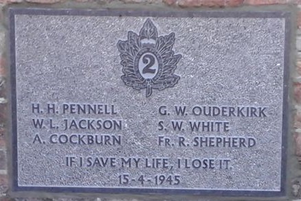 A stone plaque to commemorate six riflemen Killed in Action on 15 April 1945, the last Queen’s Own Rifles’ battle casualties of The Second World War.