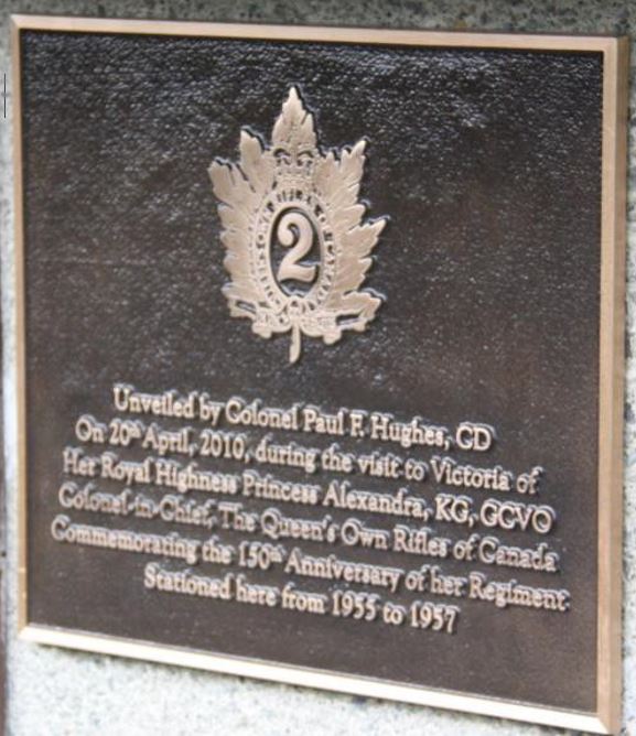 Plaque commemorating the Regiment’s posting on the grounds of the University of Victoria from 1955 to 1957.