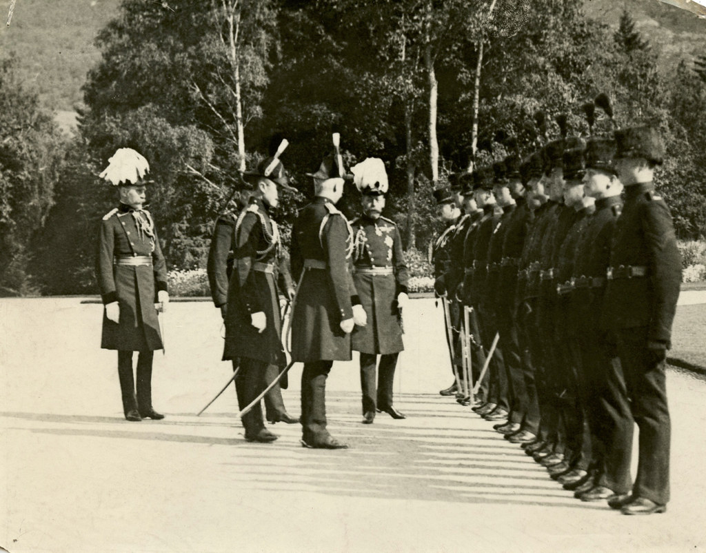 Balmoral party arrived at Ballater about 8 a.m. Royal carriage at Station for officers, and Sergeant Major, and pipers to play the men to Ballater Barracks. Inspection by the King at 1 p.m. C.V.O. conferred on Colonel Pellatt and Lieutenant Colonel Mason; M.V.O, on Major Rennie and Captain Higginbotham; Victoria Medal on Sergeant MacDonald.