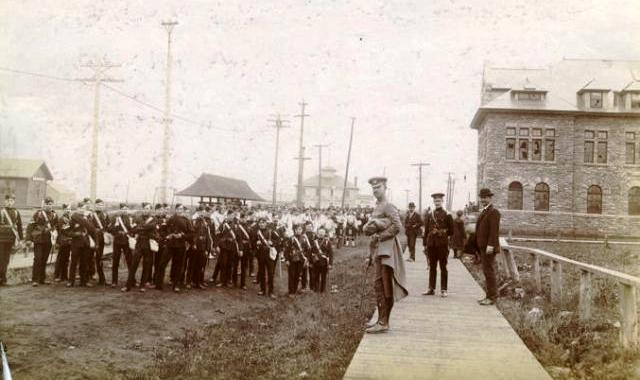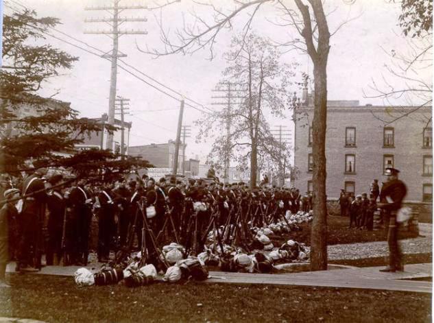 On September 29, 1903 (then) Brevet Major Malcolm Mercer commanded the detachment of the Queen’s Own Rifles (70 men and 3 officers) which was part of a force of regulars and militia (48th Highlanders and 10th Royal Grenadiers) rushed to Sault Ste Marie to quell a riot of unpaid workers of the Consolidated Lake Superior Corporation. Good fortune smiled and no violence occurred. After a pleasant trip the detachment arrived home on 2 October.