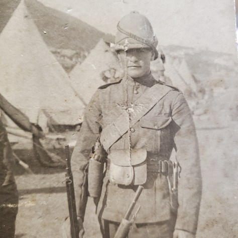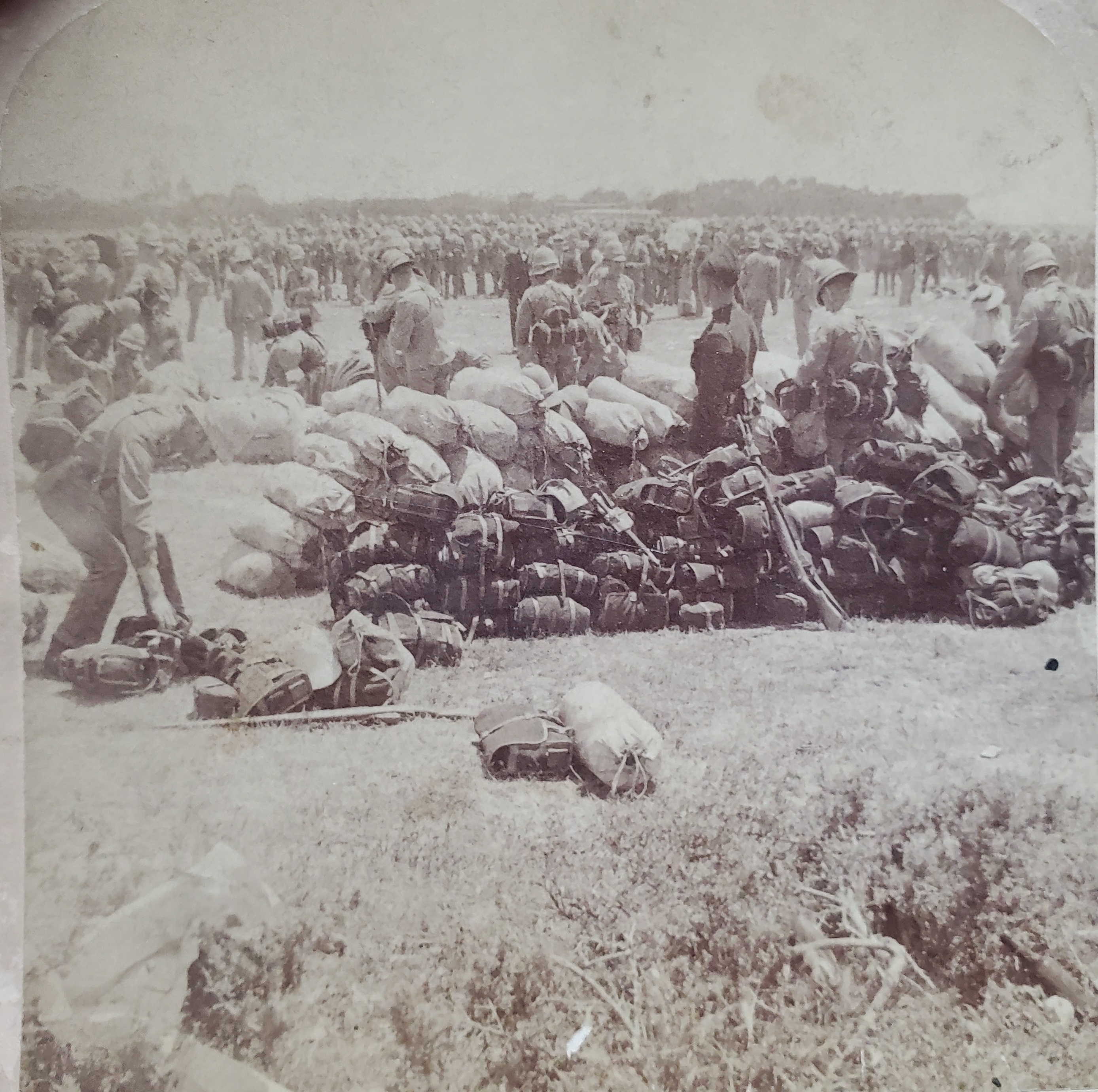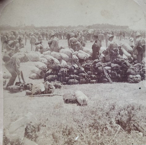 On account of a shortage of Khaki uniforms, the right half battalion only will land in the above dress. The balance will be secure in Cape Town. Today every man received a bandolier presented by an American firm. *Diary of Edgar Henry Redway C Coy 2 RCR[3]