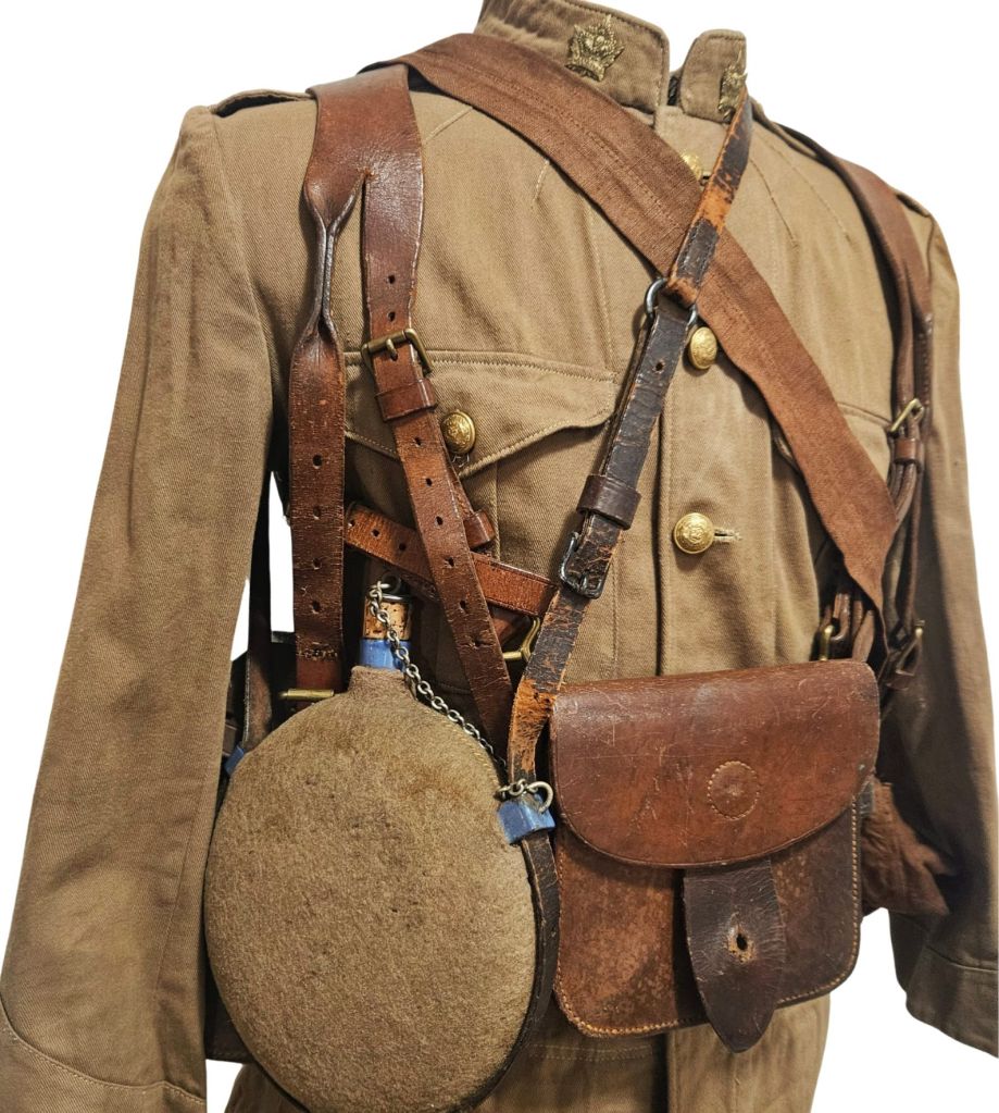 The leather equipment used by the battalion was of the 1899 Oliver Equipment. At the time, this leather equipment was supplied by the Adams Bros of 176/8 King St. East, Toronto. [1]