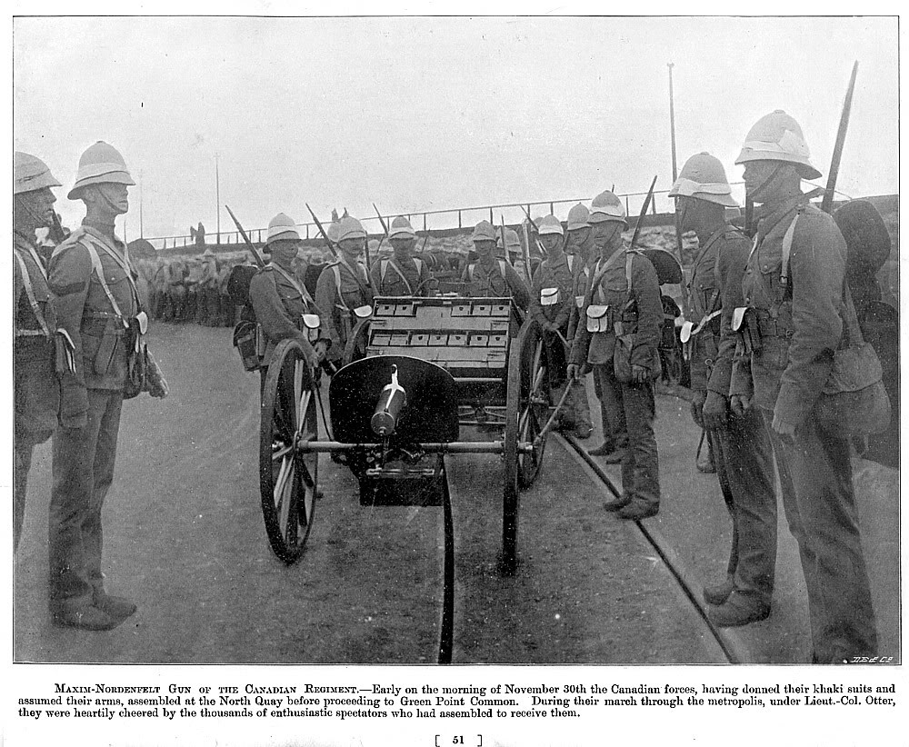 “According to arrangements already made by the Minister of Militia, the contingent was to be sent to South Africa in the dark serge uniforms of the rifle regiments of the Canadian service, uniforms of khaki to be taken on the troop ship and served out just before the arrival of the force in South Africa.” (Pg 124 History of The Queen’s Own Rifles of Canada By Captain E.J. Chambers)