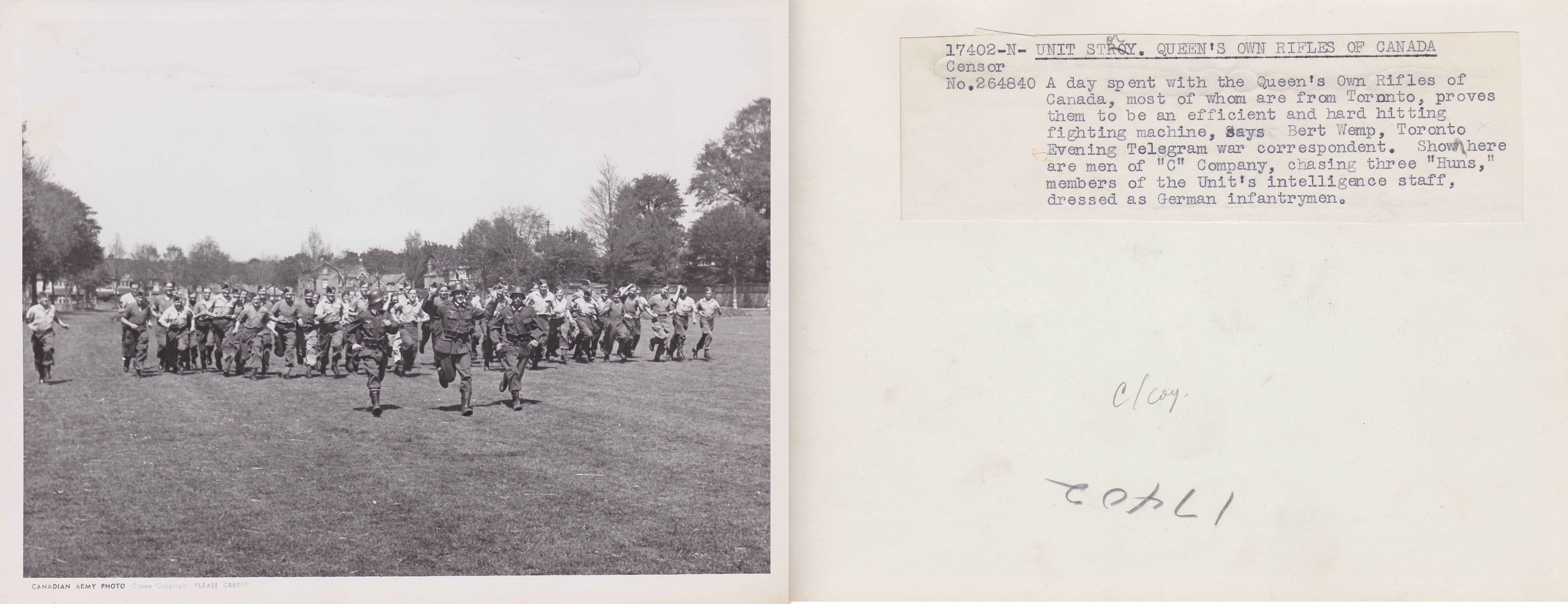1130 Lt TE Parkinson spoke to Canadian listeners about the QOR in England. Sgt F Foulkes and Cpl Saltstone also assisted in the broadcast.