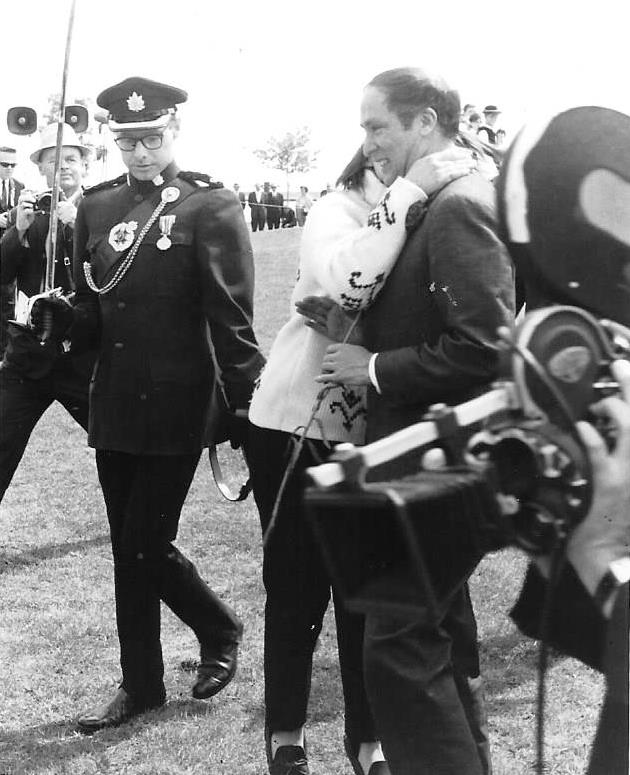 ThenMajor Don Pryer escorts Prime Minister Trudeau reviewing the guard of honour when he is ambushed by an admirer.