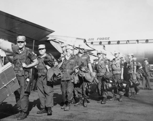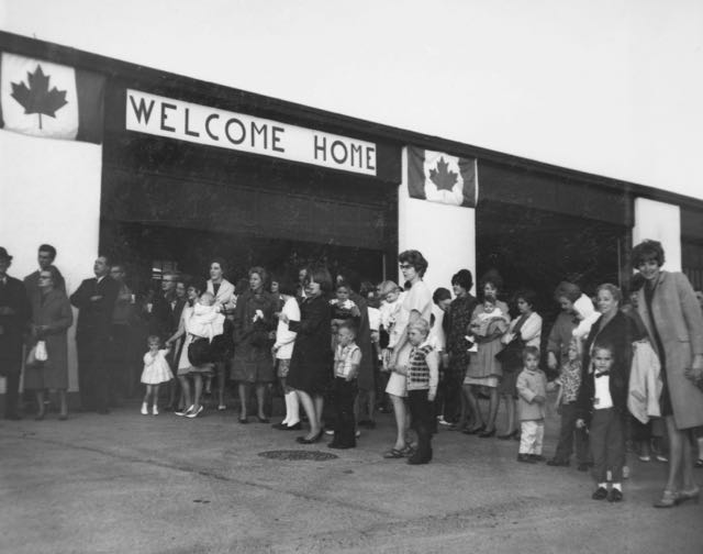 At 0700 hours 1 Apr, one hundred and fifteen members of the unit, each with $10.00 in US currency, trooped down to Building AF-16 for final processing (the five extra soldiers were last-minute spares). Accompanying baggage was weighed and manifested, identity discs were issued and documents were checked once again. Family farewells were then said over coffee and biscuits generously provided by Col Orly Fusion’s Maple Leaf Services (Calgary Branch), and the Advance Party boarded chartered buses for the trip to the airport.