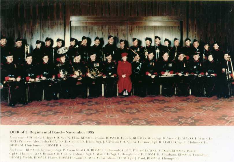 1985 Nov Regimental Band and CIC001 September 26, 2012 5917 × 4115 Archives The Queen’s Own Rifles Regimental Band with the Colonel in Chief, HRH Princess Alexandria of Kent, November 19185 Share this: Email a link to a friend (Opens in new window) Email Print (Opens in new window) Print TweetMore Share on Telegram (Opens in new window) Telegram Share on WhatsApp (Opens in new window) WhatsApp Share on Tumblr Share on Reddit (Opens in new window) Reddit Like Loading...