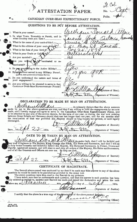 - September 1914 – he was a Captain when he attested for CEF at Valcartier