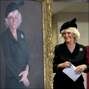 The Duchess of Cornwall views the portrait of her presented to the regiment by Honorary Colonel Paul Hughes, CD.