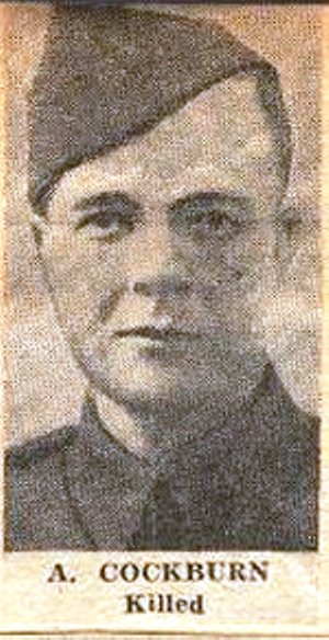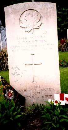 B64220 Corporal Alexander Cockburn was born in Dundee, Scotland, on 14 September 1914, the son of James Cockburn and Agnes Thorburn. He had three sisters and two brothers. Corporal James Cockburn was killed in Sicily with the 49th Highlanders in July 1943. He belonged to the Church of England.