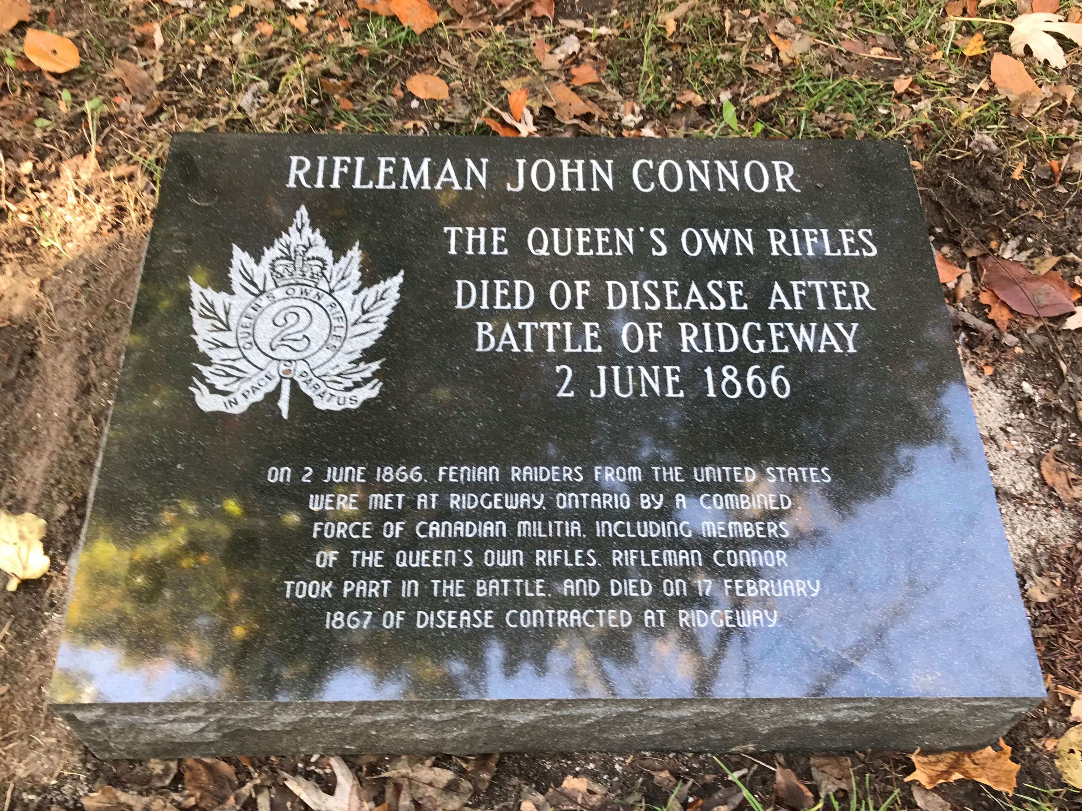 As of 2022, thanks to efforts by the regiment, a new grave marker was installed for Rifleman John Connor.