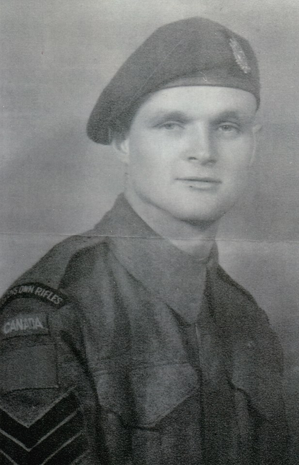 He left Porquis Junction in 1939 to join the Royal Canadian Air Force but his application was rejected. Finally, in 1940, he went to Hamilton, Ontario, and was accepted by the Argyll and Sutherland Highlanders of Canada (Hamilton) Regiment. He served with them in Canada, Jamaica and England; then transferred to the Queen’s Own Rifles of Canada in the summer of 1944 and was soon promoted from corporal to sergeant.