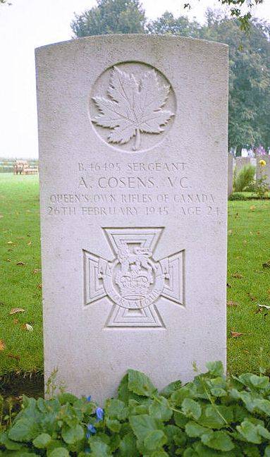 Sergeant Cosens was 23 years of age when he died and is buried in Groesbeek Canadian War Cemetery (VIII. H. 2.), Nijmegan, The Netherlands where a plaque was erected in his memory. On Aug. 29, 1969, a provincial plaque was erected in his memory on Highway 11 near Porquis Junction. A now retired tourist steamer on Lake Temagami was named after him as is the Latchford branch of The Royal Canadian Legion.