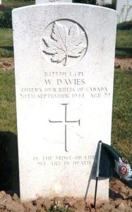 B127791 Lance Corporal William Davies was born in Toronto on 6 February 1917, the son of railway worker George Davies and Gertrude Brockbank (died 12 September 1944.) He completed three high school years and belonged to the United Church of Canada.