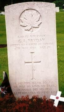 Rifleman Fryday was killed in action in Holland on 4 May 1945, aged 20. He and Rifleman Melvin Smith were the last two QOR soldiers killed during the Second World War. He is buried in Holten Canadian War Cemetery, grave reference VII. F. 12. His family had the following engraved on his marker: