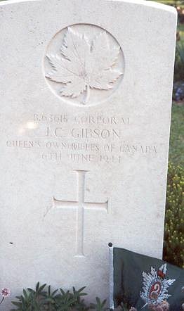 Corporal Gibson landed on Juno Beach on D-Day, 6 June 1944 and was killed in action, aged 31. He is buried in Beny-sur-Mer Canadian War Cemetery, grave reference I. C. 7.