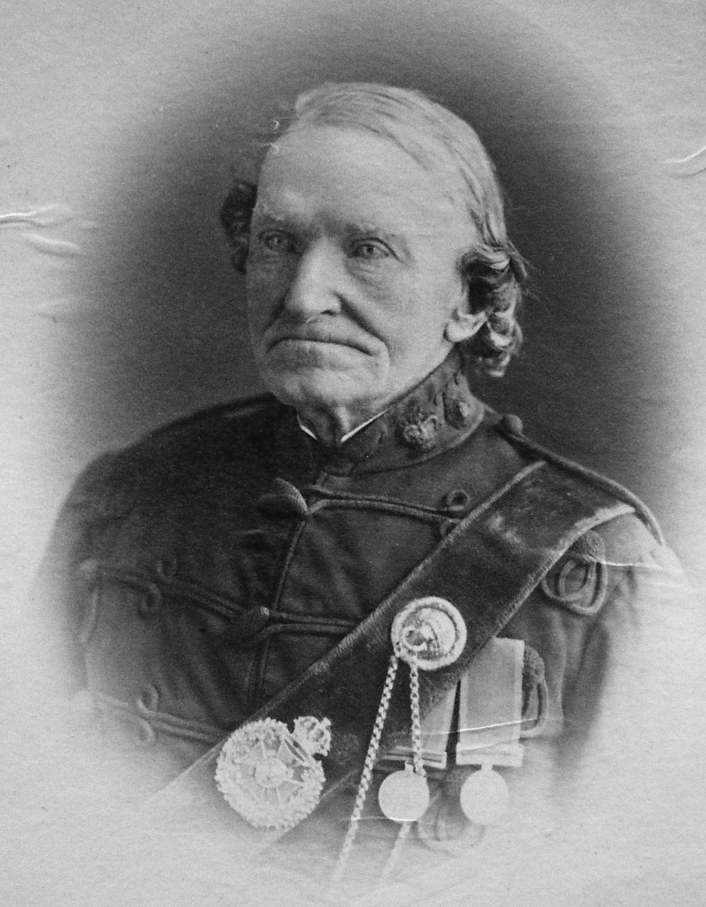 Having 25 years experience in the British Army including being wounded twice at the Battle of Waterloo in 1815 and 5 years as Captain of the Toronto Foot Artillery, Goodwin came to the Queen’s Own on its inception in 1860 as the regiment’s first Adjutant.
