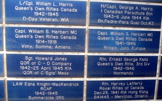 “The Queen’s Own Rifles had the roughest experience of all the Canadian battalions. … but “B” Company’s landing craft blown off course by the wind and beached the men directly in front of the machine guns. These soldiers had to draw upon all their reserves of courage to save the situation. Three men, Lieutenant Herbert, Corporal Tessier and Rifleman Chicosky, were awarded medals for their work in destroying the main pillbox.”
