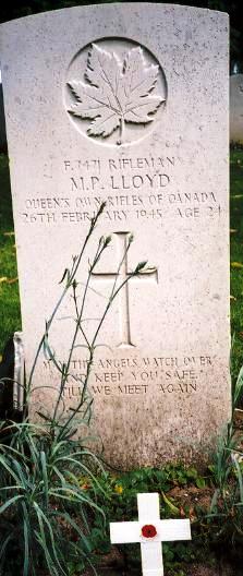 Rifleman Lloyd was killed in action during Operation Blockbuster on 26 February 1945. He is buried in Groesbeek Canadian War Cemetery, grave reference VIII. H. 6.