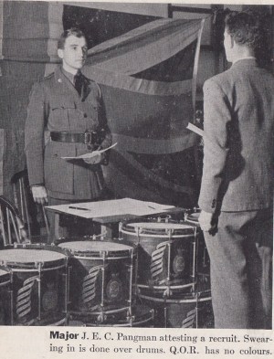 During the war Pangman served as second-in-command of The Queen’s Own Rifles and later commanded the Carleton and York Regiment in Sicily and Italy, and the Essex Scottish Regiment in Northwest Europe.