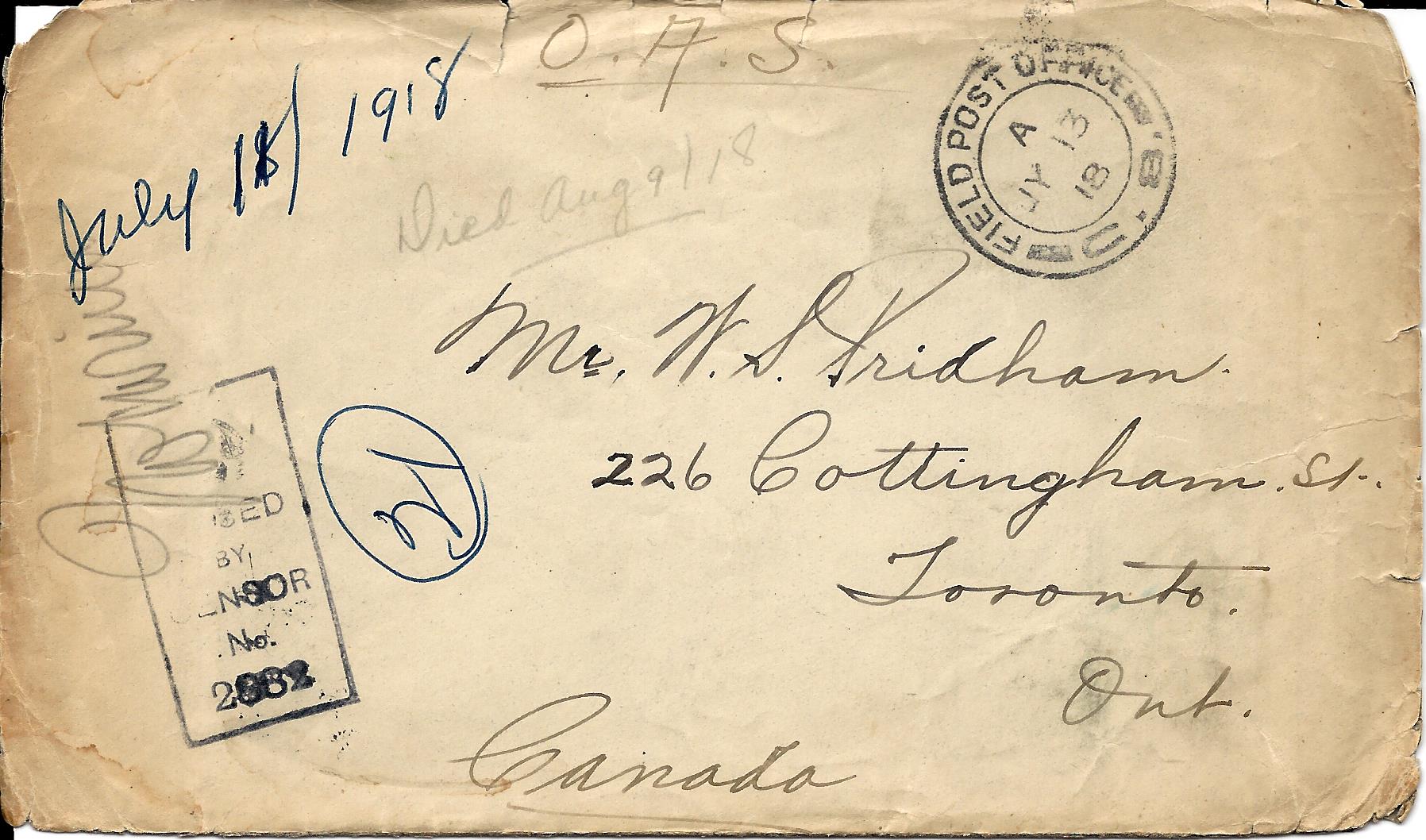 Pridham 1918 07 11-6 March 27, 2014 1796 × 1058 Pridham 11 July 1918 Envelope cover of a letter from Lawrence Pridham to his Uncle Will (called Bill here) sent from France 11 July 1918 Share this: Email a link to a friend (Opens in new window) Email Print (Opens in new window) Print TweetMore Share on Telegram (Opens in new window) Telegram Share on WhatsApp (Opens in new window) WhatsApp Share on Tumblr Share on Reddit (Opens in new window) Reddit Like Loading...