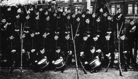 There is no fixed date for the formation of the Upper Canada College (UCC) Cadets, though beginnings can be traced to a willingness of students to participate in the defence against the 1837 rebellion. Later in the 1800s, in schools throughout England, Canada and the United States, involvement in a military body was thought of to inspire patriotism in young men, as well as being a good method of teaching discipline and obedience. By 1863, UCC students were paraded weekly, in an amateur fashion, under someone known as Major Goodwin, but with the beginning of Fenian troubles in Upper Canada by 1865, UCC students requested that the Cadets form into a company of the Queen’s Own Rifles. By 1866, the request was fulfilled, making UCC possibly the second school in Canada to have a proper Cadet Corps (the first being Bishop’s College School in Lennoxville, Quebec).
