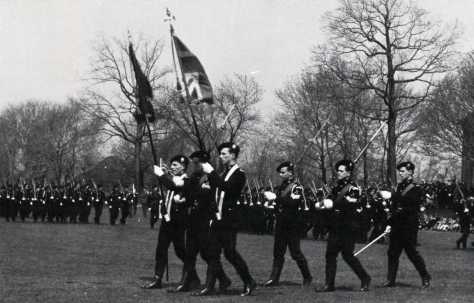 17 Upper Canada College Cadet Corps marching out of Moss Park Armoury circa 1979 led by Captain Walter Belfontaine, CD