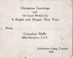 1916 Christmas Card from the Officer Commanding and Officer’s of the 166th Battalion, CEF
