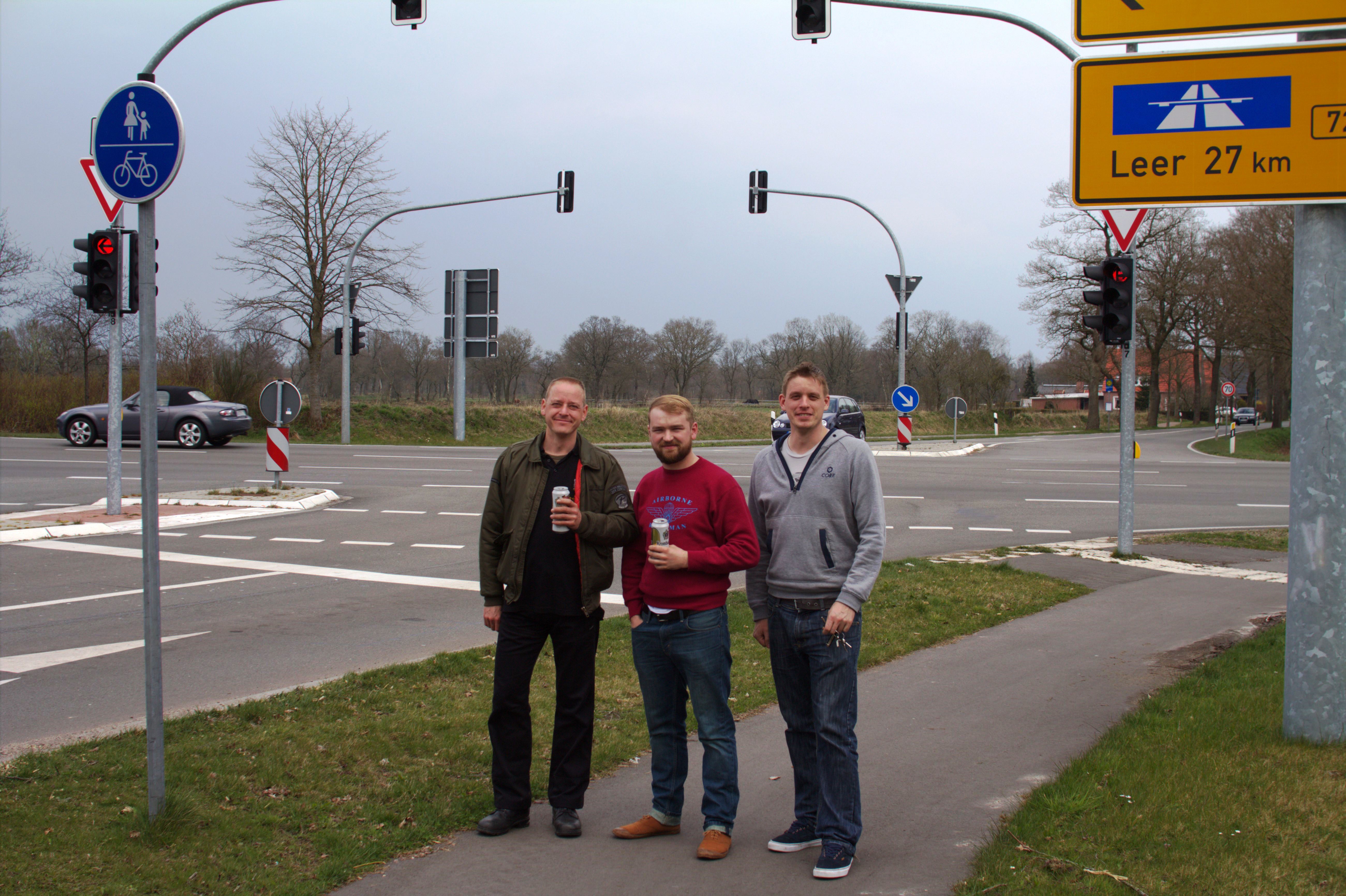 Ivo Kuijkhoven, Sergeant Graham Humphrey and Jork Zijlstra at the crossroads in 2015 where the QOR ended their war.